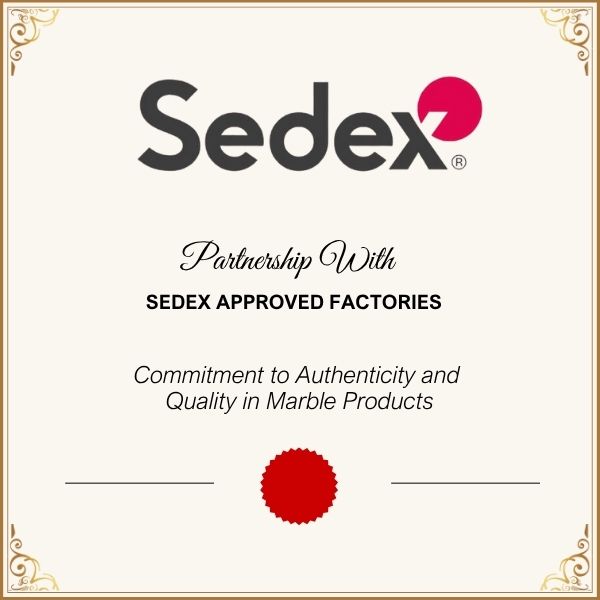 We are committed to using 100% authentic marble stones in all our products, rigorously ensuring that no artificial fillers or dyes are incorporated. Our dedication to quality extends to our manufacturing process, where we collaborate exclusively with multiple Sedex-approved factories. This strategic partnership guarantees that our products consistently meet the highest standards of ethical sourcing, labor practices, and overall product excellence, from raw material to the final output.
