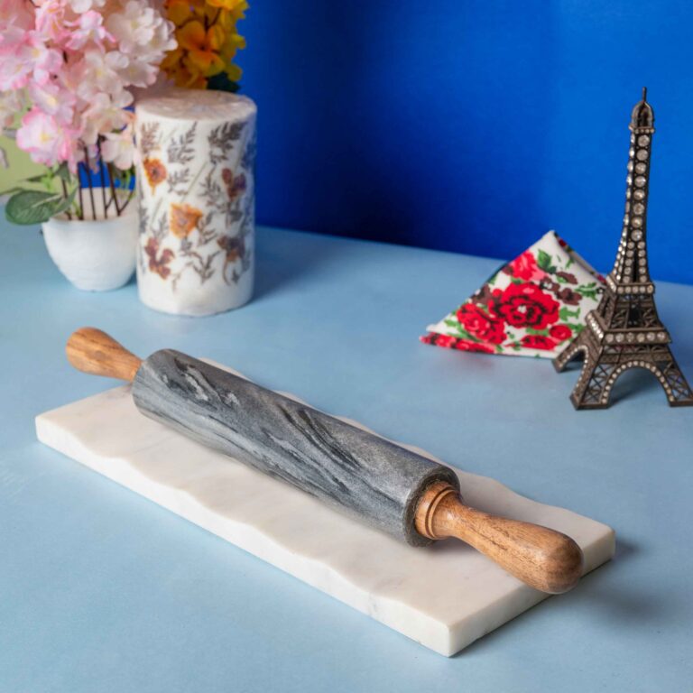 Whether you’re a professional baker or a passionate home cook, the GREY MARBLE ROLLING PIN with wooden handles is an essential tool that combines functionality and style. Its durable construction, ergonomic design, and beautiful aesthetic make it a valuable addition to any kitchen, enabling you to effortlessly create culinary masterpieces with precision and ease.